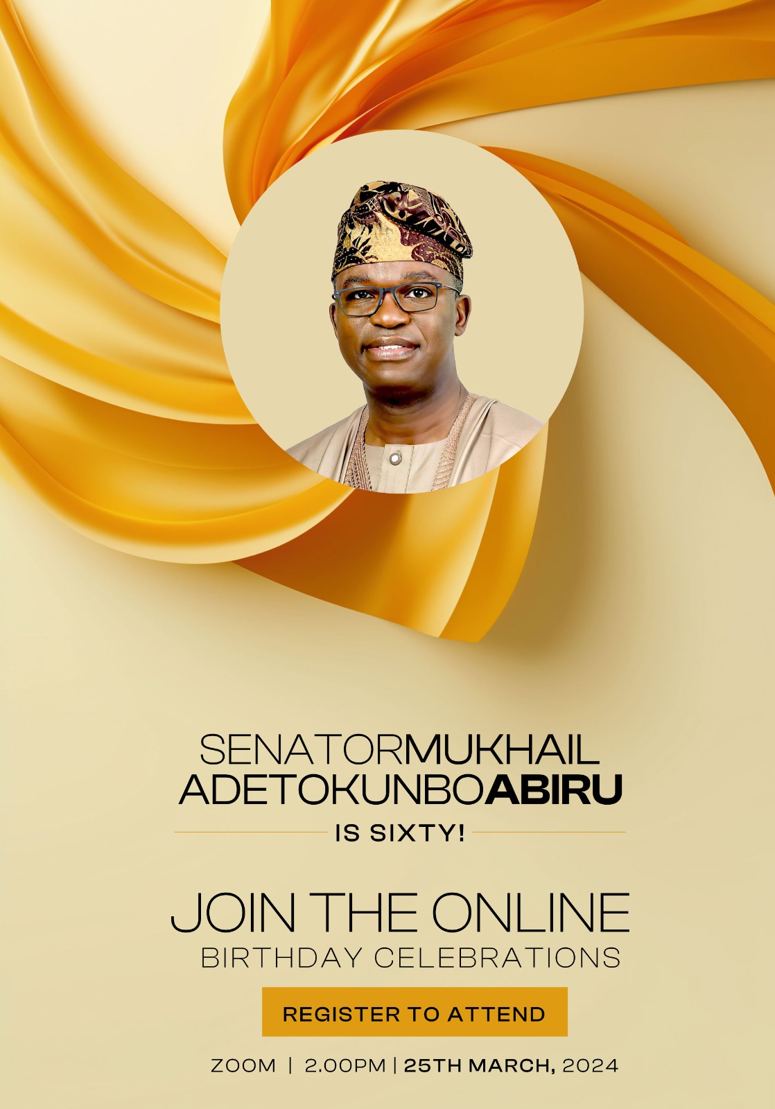Former Deputy Speaker, Ogun State House of Assembly, Rt. Hon. Tola Banjo has congratulated the Senator representing Lagos East Senatorial District and Chairman Southern Senators Forum, Senator Olatokunbo Abiru on the occasion of his 60th birthday anniversary and that of his daughters, Fadekemi and Onikepo Abiru.
