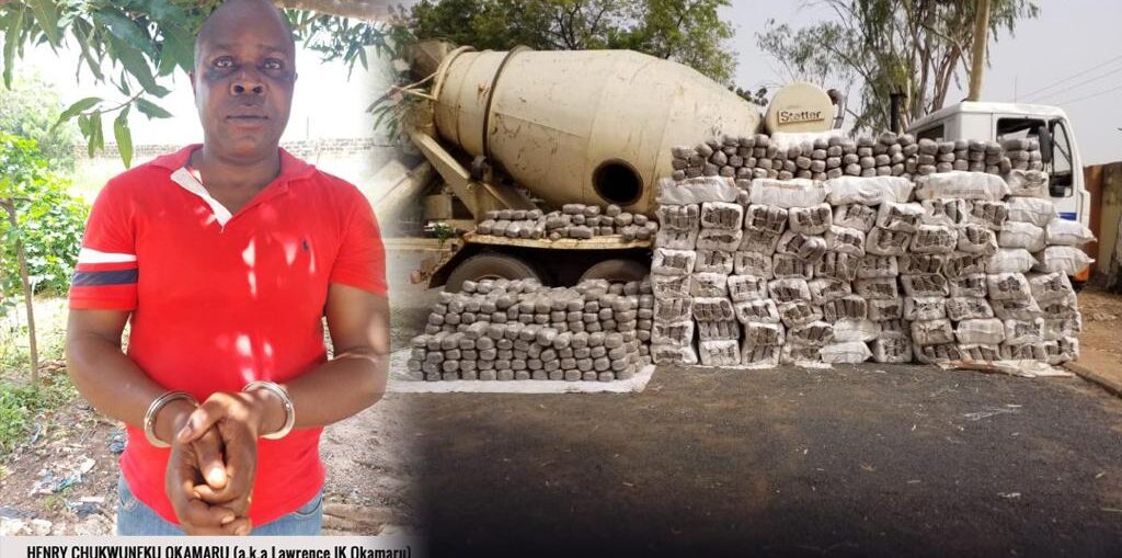 Wanted drug kingpin behind the 2000.6kg Cannabis Sativa seized in a concrete mixer truck in Adamawa State on 2nd December 2021, Henry Chukwuneku Okamaru (a.k.a. Lawrence Ik Okamaru) has been arrested in Ondo state after five months of manhunt by operatives of the National Drug Law Enforcement Agency, NDLEA.