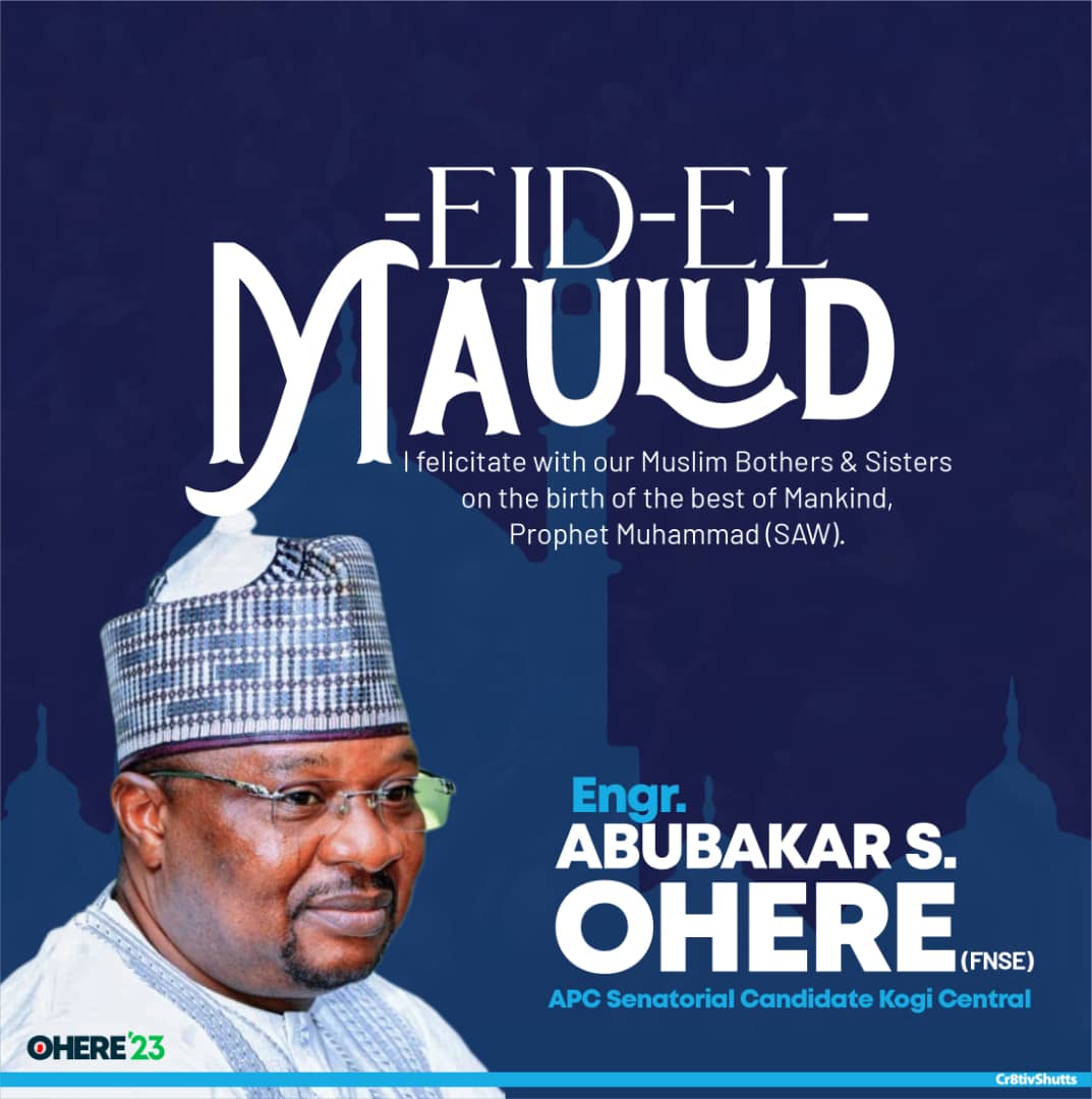 The All Progressive Congress’s Senatorial Candidate for Kogi Central District, Engr Abubakar Sadiku Ohere, FNSE felicitates with Muslim faithful on…