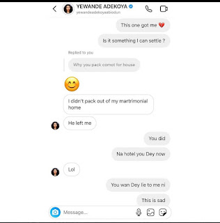 It is not clear as at this time if there are chances of their reconciliation, but the husband, Abiodun Thomas was the one who moved out of their matrimonial home and not clear where he moved to.