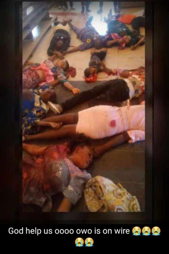 Video of the attack shared online shower bodies believed to be of church members in a stream of blood.