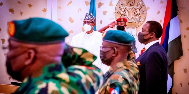 The President gave these directives in Abuja, Tuesday, after receiving briefs from the Service Chiefs led by the Chief of Defence Staff, General Lucky Irabor, with the Chief of Army Staff, Lt-General Faruk Yahaya, the Chief of Air Staff, Air Marshal Isiaka Amao, the Inspector General of Police, Usman Baba, as well as Major General Samuel Adebayo, the Chief of Defence Intelligence and the Director General of the Department of State Services, DSS, Yusuf Magaji Bichi in the State House.