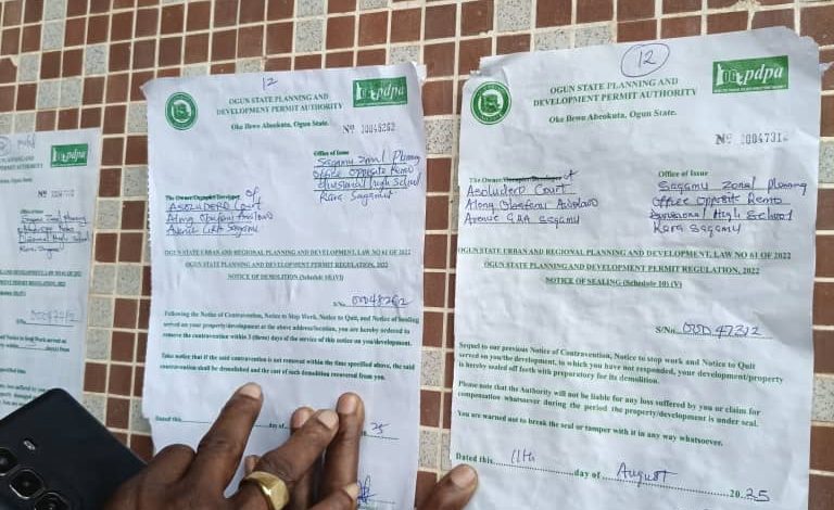 This move comes despite mounting public outcry and growing tensions across Ogun State, with many accusing the governor of using state machinery to target political rivals. The official notices, seen by Nigeria Standard, cite alleged violations of planning and development regulations — but critics argue that the timing and choice of target are no coincidence.