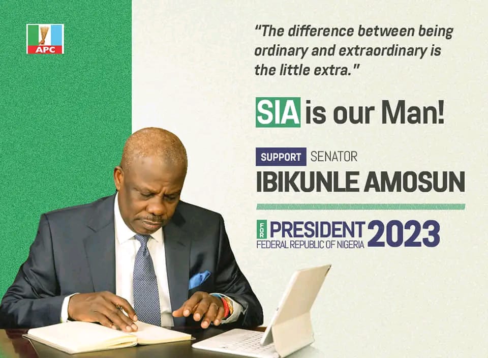The ex-lawmaker stated this Shortly after Senator Ibikunle Amosun picked the All Progressives Congress (APC) expression of interest and nomination forms to contest the 2023 presidential election less than twenty hours after his declaration to run at the Sheu Musa Yar’Adua centre in Abuja where scores of his loyalists, party faithful and support groups converged on to register their backing for a Man described by many as the one to engineer the birth of a new Nigeria.